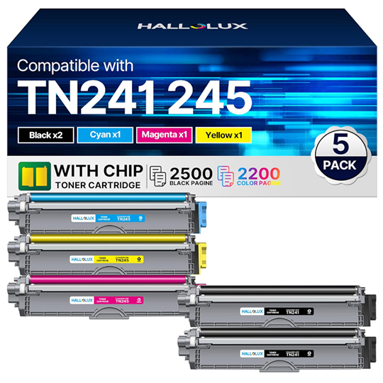 2500 pages per TN241BK TN242BK black toner, 2200 pages per TN245 TN246 colour toner for Brother MFC 9142 CDN toner (at 5% coverage)